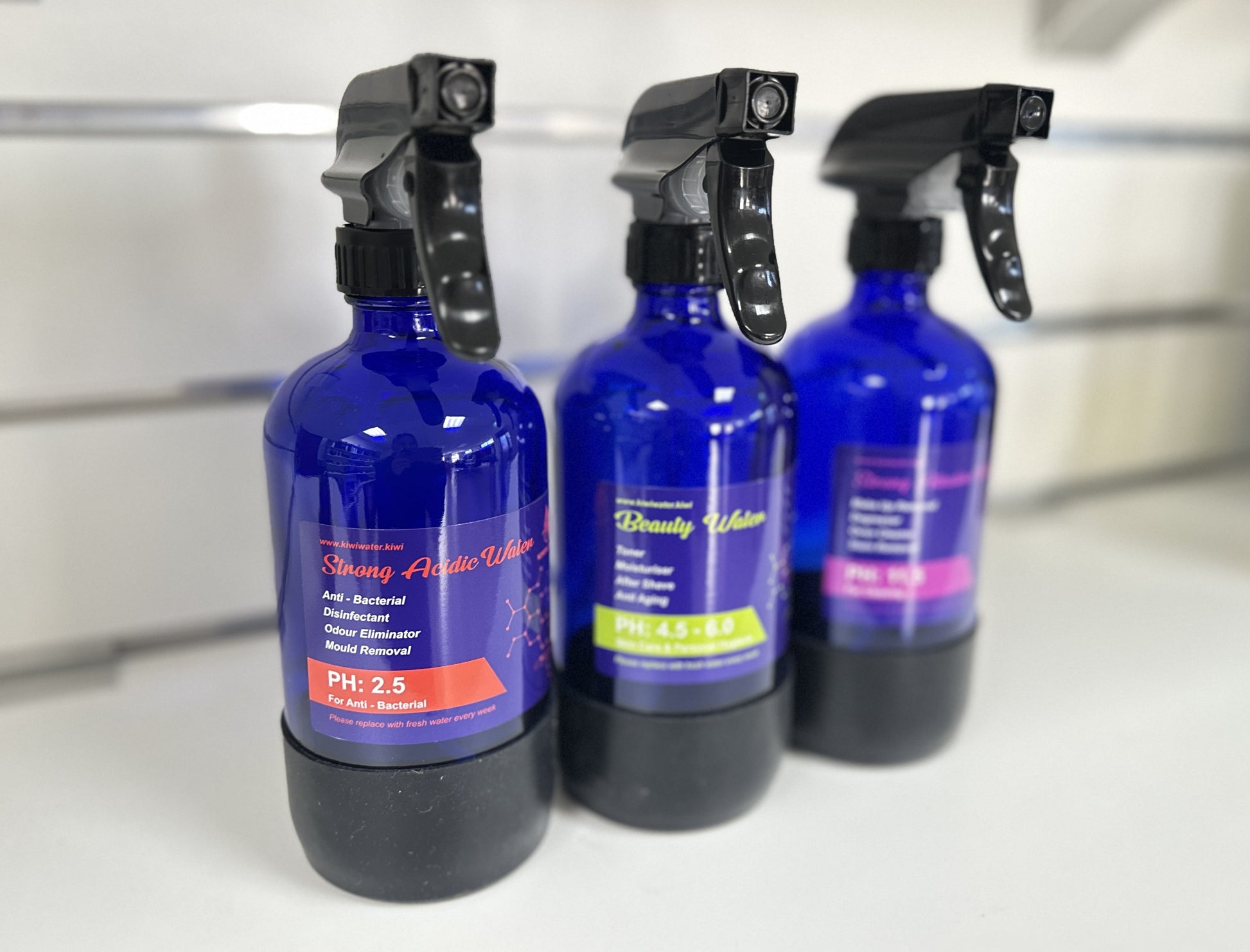 Upgrade your skincare and household routine with our powerful trio of functional waters. Each bottle is specially formulated with a unique pH level to support a specific purpose – from beauty care to powerful cleaning and sanitizing.